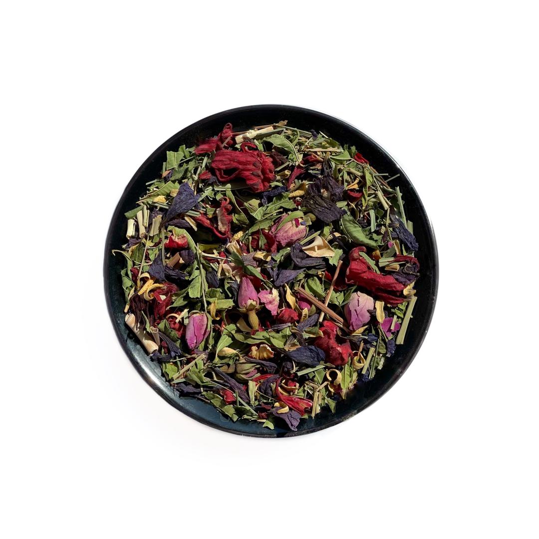 چای سیاه دست چین شده, میوه های خشک, آناناس, انبه, کشمش, رزهیپ پاپایا, پوست پرتغال