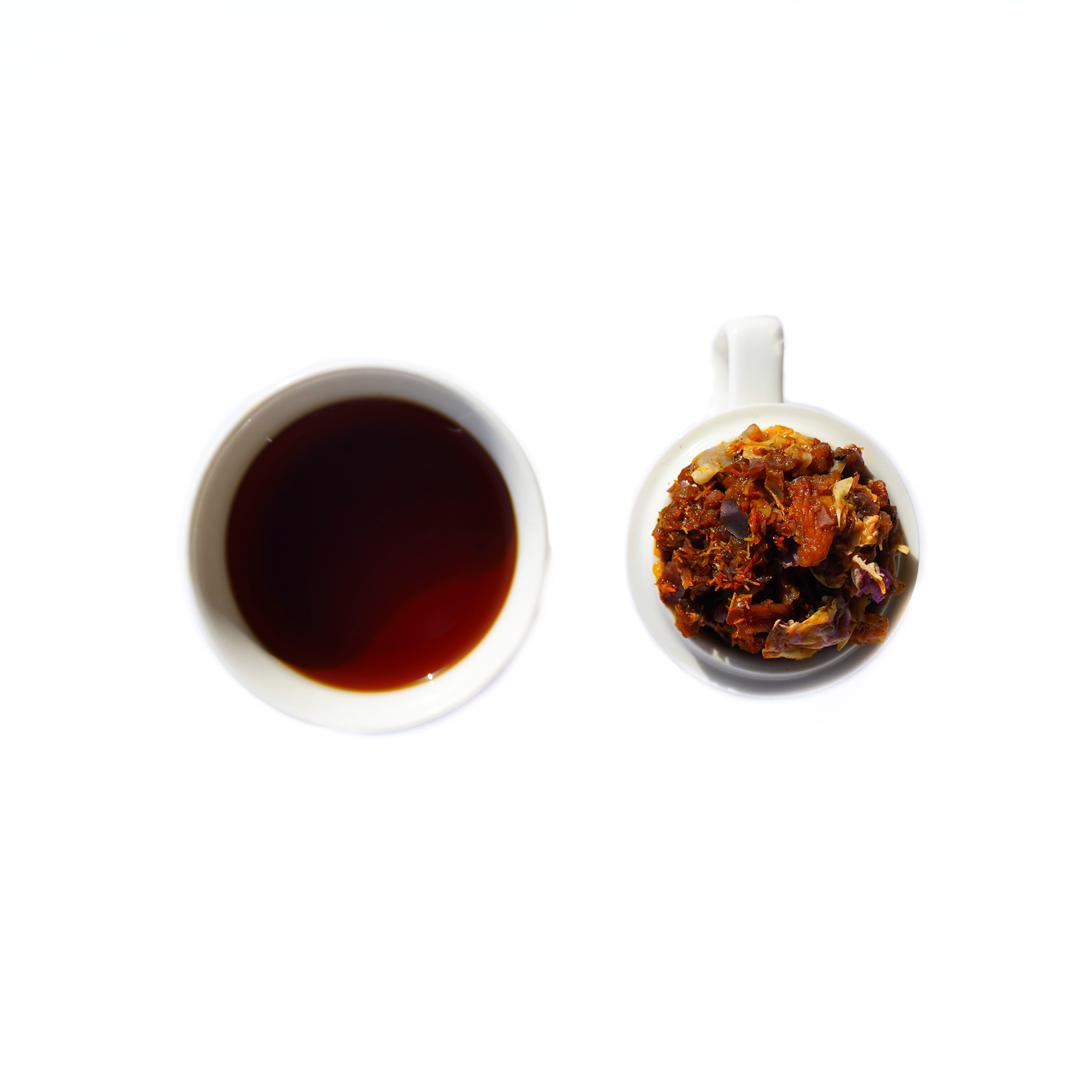 چای سیاه دست چین شده, میوه های خشک, آناناس, انبه, کشمش, رزهیپ پاپایا, پوست پرتغال