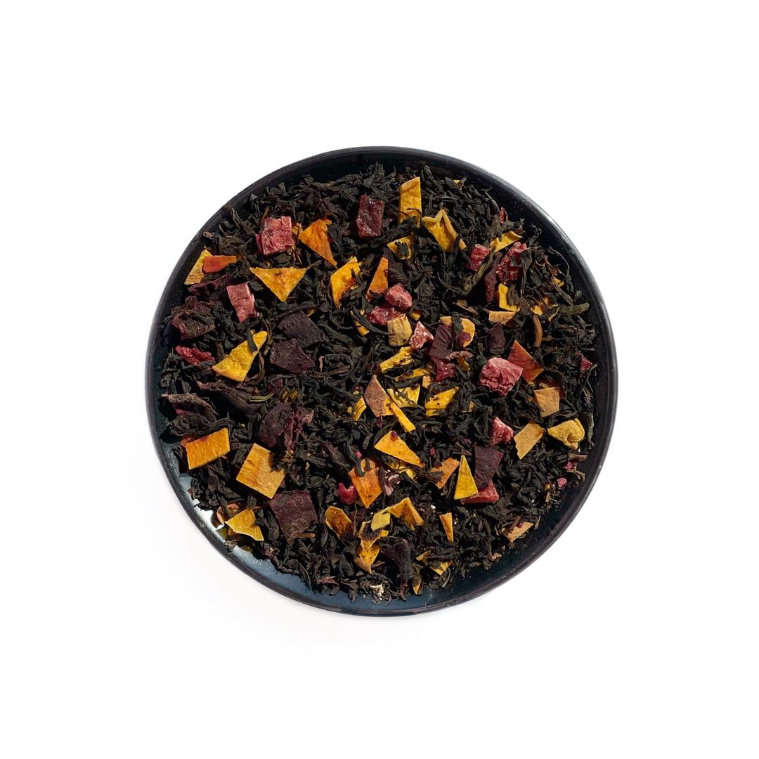 ترکیبی از چای سیاه دستچین، هلو و شیرینی چغندر