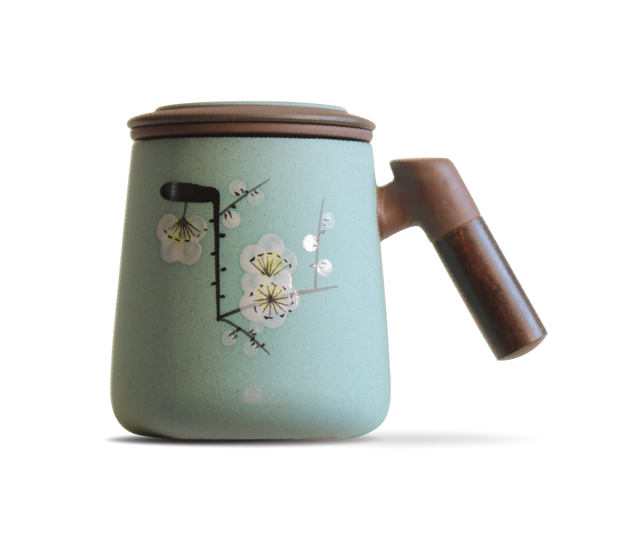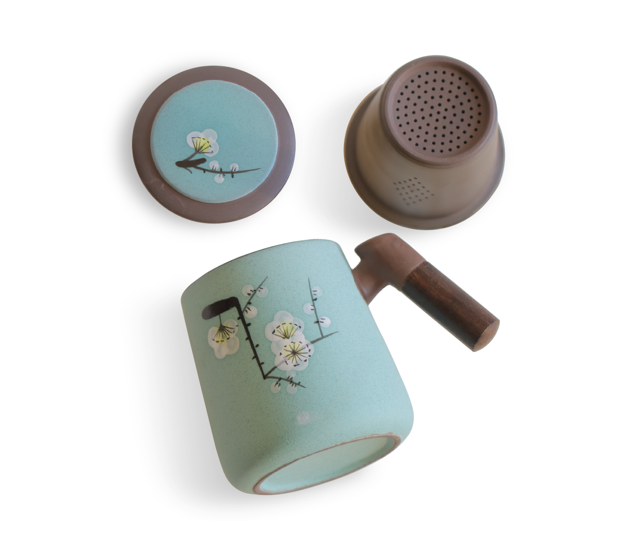 لیوان سرامیکی شنی آبی کم رنگ با درب و صافی